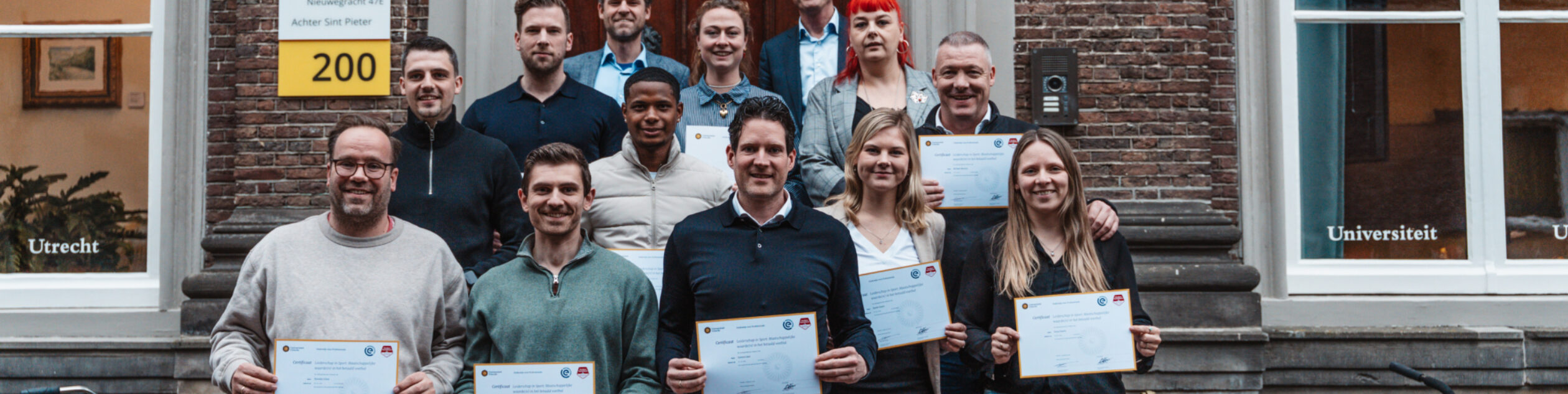 De deelnemers van de leergang “Leiderschap in Sport: maatschappelijke waarde(n) in het betaald voetbal” hebben hun certificaat in ontvangst genomen. Daarmee sloten zij het zes maanden durende programma succesvol af.