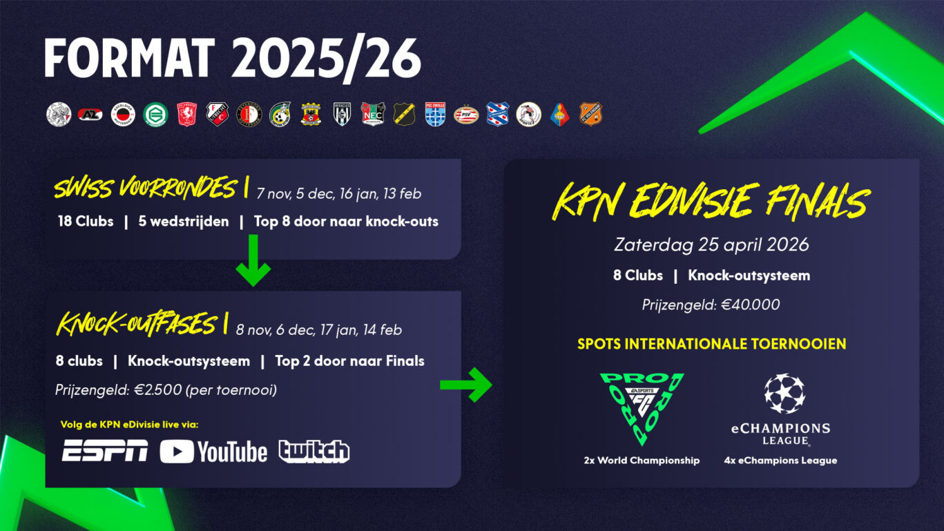 In totaal staat er dit seizoen een prijzenpot van €50.000 op het spel. Tijdens de Finals nemen de acht beste clubs van Nederland het tegen elkaar op voor meer dan alleen de nationale titel: er liggen ook vier kwalificatieplekken voor de eChampions League en twee plaatsen voor het Wereldkampioenschap EA SPORTS FC™ in het vooruitzicht.