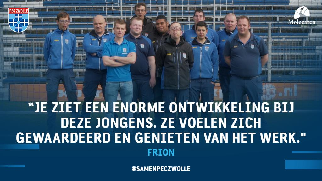 PEC Zwolle, PEC Zwolle United en Frion hebben het mogelijk gemaakt om voor mensen met een beperking een van hun dromen te realiseren, namelijk bij hun favoriete voetbalclub werken. PEC Zwolle United is het ‘maatschappelijk hart’ van PEC Zwolle en gebruikt sport om sociaal-maatschappelijke projecten tot stand te laten komen. Frion helpt mensen met een verstandelijke beperking. Inmiddels krijgen al meer dan 1000 mensen ondersteuning bij Frion.