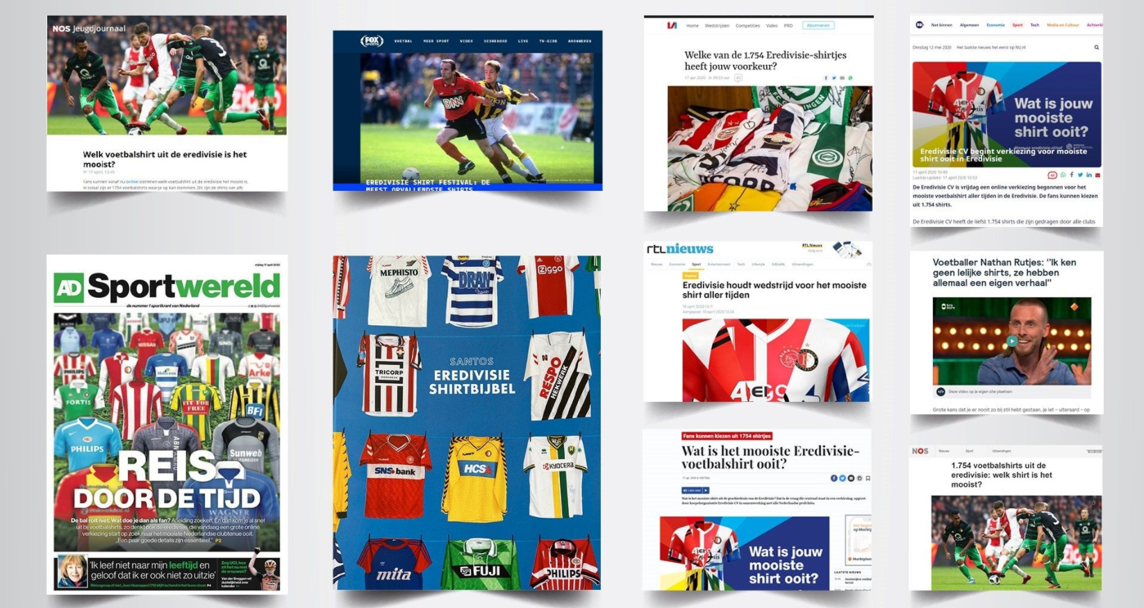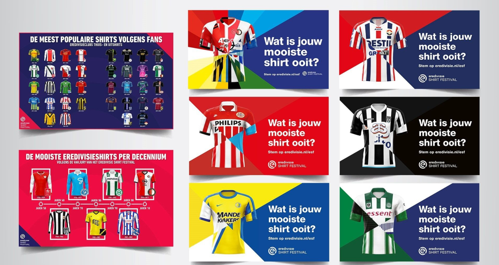 Samen met de (ex-)Eredivisieclubs, Triple Double, Santos, FOX Sports en AD introduceerden we op 17 april dit jaar het Eredivisie Shirt Festival. Een ode aan 64 jaar Eredivisie en alle 1.754 shirts die sinds de oprichting in 1956 zijn gedragen. Via eredivisie.nl/esf vroegen we voetbalminnend Nederland wat het allermooiste shirt ooit is.