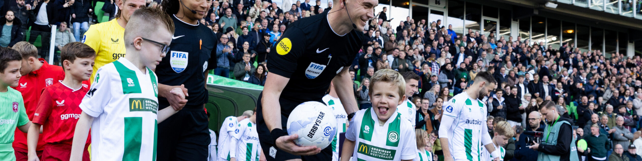 Voor de aftrap namen verschillende spelers van Kids United deel aan het vlaggenspektakel, terwijl anderen meeliepen in de line-up naast de spelers van FC Groningen. Hun enthousiasme werd zichtbaar gedeeld door het publiek op de tribunes.