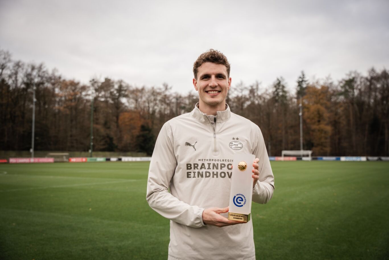 Voor Guus Til is het zijn tweede maandprijs. De PSV'er won de prijs eerder in september 2021, toen nog als aanvallende middenvelder bij Feyenoord. Hij bleef in de maandverkiezing onder meer Jizz Hornkamp (Heracles Almelo) en Joël Drommel (Sparta Rotterdam) voor.