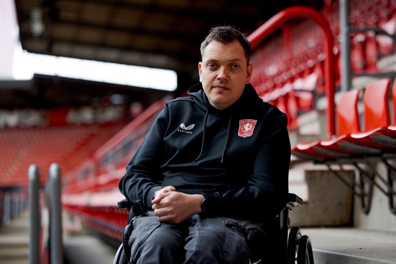 De 41-jarige Jesper is door zijn rol in het stadionteam een bekend gezicht bij FC Twente. Voor het eerst voelt hij zich niet ‘de jongen in een rolstoel die niets kan’, maar gewoon Jesper van FC Twente. Hij vond in de Grolsch Veste zijn plekje en bloeide er zichtbaar op.