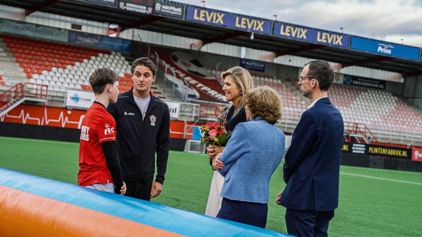 Terwijl het gesprek plaatsvond, waren de deelnemers zelf actief op het veld bezig met een sportles. Koningin Máxima sloot hier later aan, waar zij zag hoe sport, zelfvertrouwen en samenwerking centraal staan binnen het programma. Sean-Mike en Sebastiaan, deelnemers van Community Champions, deelden persoonlijk wat het programma voor hen betekent. Het bezoek werd afgesloten met groepsfoto’s: een bijzonder moment voor alle betrokkenen.
