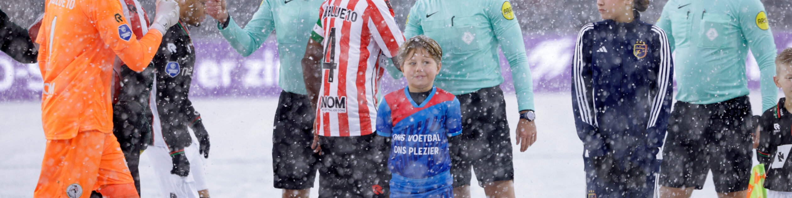 Na 6 minuten en 56 seconden besloot scheidsrechter Jannick van der Laan dat doorspelen niet verantwoord was door de hevige sneeuwval. De lijnen werden onzichtbaar en de bal rolde nauwelijks nog, waardoor voetballen én de veiligheid in het geding kwamen. Aanstaande dinsdag 17 februari wordt het duel uitgespeeld om 20:00 uur met een 0-0 tussenstand uitgespeeld. De wedstrijd wordt dus niet volledig overgespeeld, maar hervat vanaf het moment van staken.
