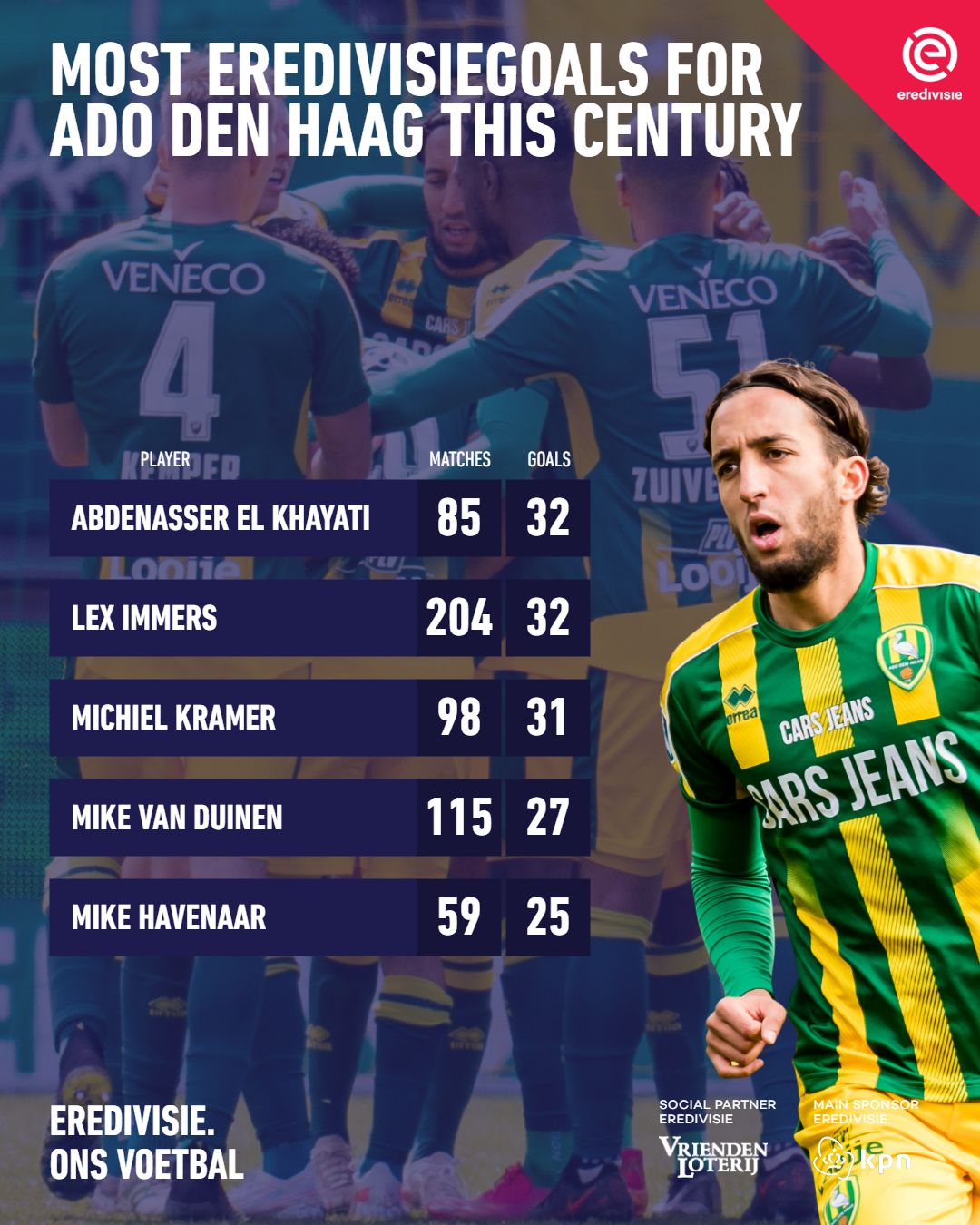 Mede dankzij twee doelpunten van El Khayati hield ADO de punten in eigen huis. De eerste treffers van de spelmaker sinds zijn terugkeer bij de club hadden direct een speciaal randje: El Khayati is nu de speler met de meeste goals en assists voor ADO Den Haag in de Eredivisie deze eeuw. Hij passeerde Lex Immers, de man die hij komende zondag nogmaals kan passeren. El Khayati is momenteel namelijk met Immers ook gedeeld topscorer van ADO deze eeuw met 32 goals. Hij had daar echter slechts 85 wedstrijden voor nodig, tegenover 204 duels voor Lex Immers.