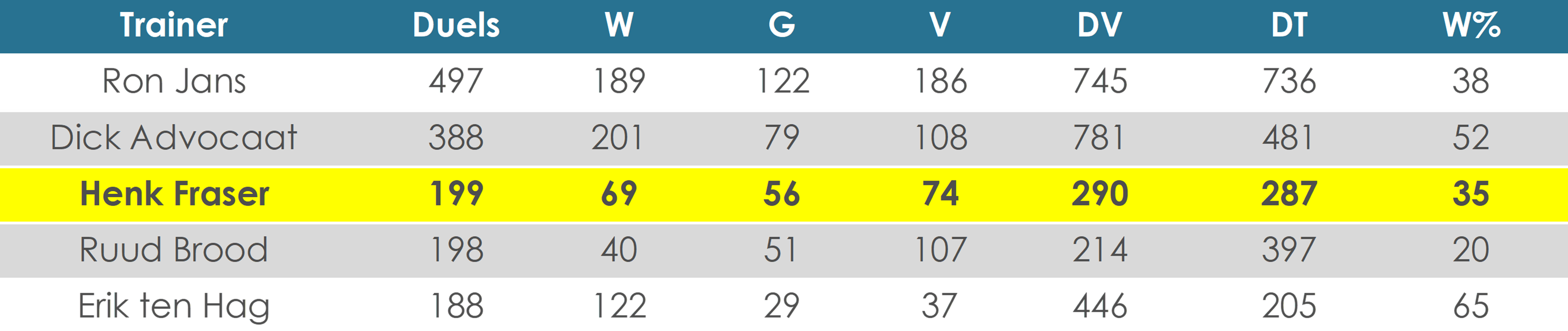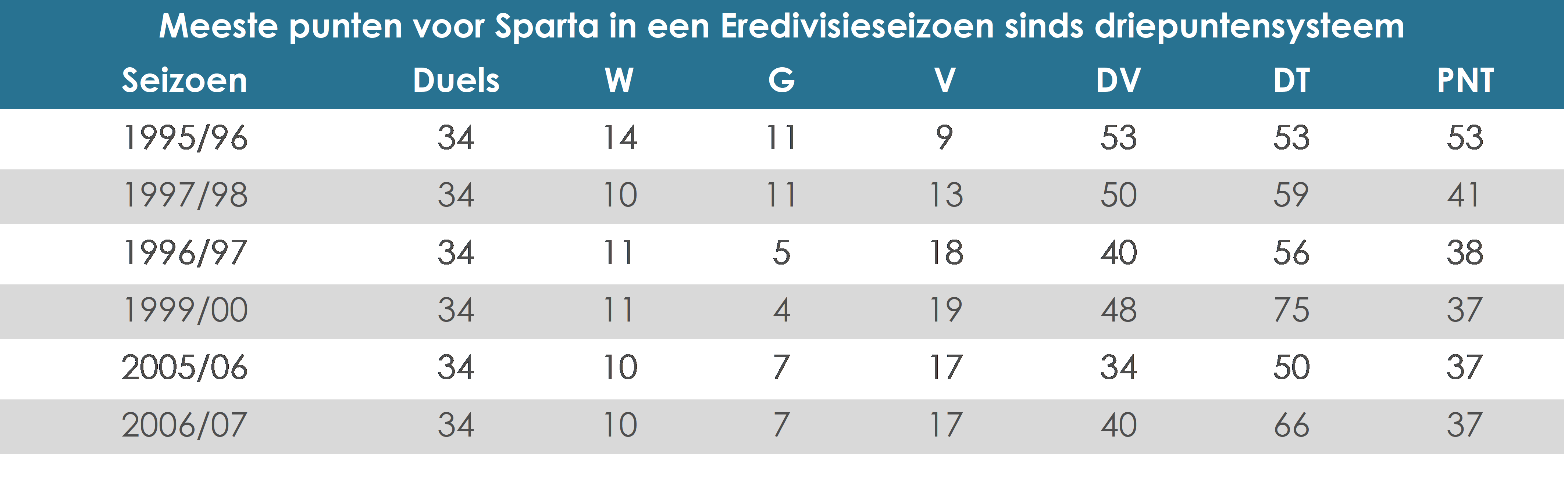 Van de voorgaande 199 Eredivisieduels van Fraser als trainer, waren er vier tegen VVV. Van die vier werd er niet één verloren (W2, G2), alleen van RKC (W4, G1), Sparta (W3) en FC Dordrecht (W1, G1) verloor Fraser als Eredivisietrainer ook niet. Een zege lijkt dus ook zeker geen onhaalbare kaart voor Sparta. De ploeg zou dan op 37 punten komen, sinds de invoering van het driepuntensysteem pakte Sparta in slechts zes volledige Eredivisieseizoenen minimaal zoveel punten. Het zou dus zomaar eens driedubbel feest kunnen zijn op Het Kasteel!
