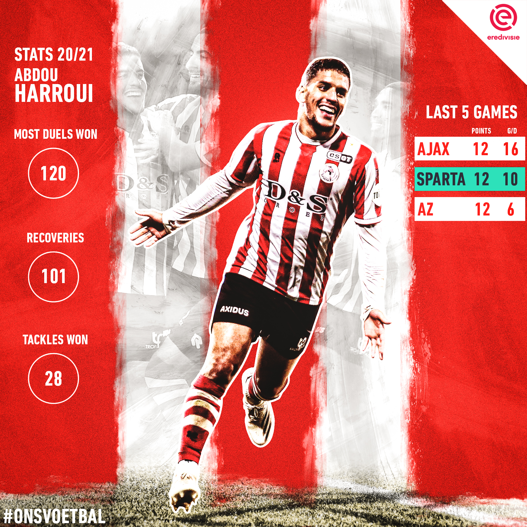 De prestaties van Abdou Harroui dit Eredivisieseizoen zijn erg belangrijk voor Sparta. Harroui is de veldspeler met de meeste gewonnen duels (120), meeste balveroveringen (101) en het tweede hoogste aantal gewonnen tackles (28) dit Eredivisieseizoen. Saillant detail is dat Harroui begin dit seizoen in de belangstelling van tegenstander FC Groningen stond. Ook de Noorderlingen zijn in vorm, dus Harroui zal ook dit weekend weer zijn beste beentje voor moeten zetten.
