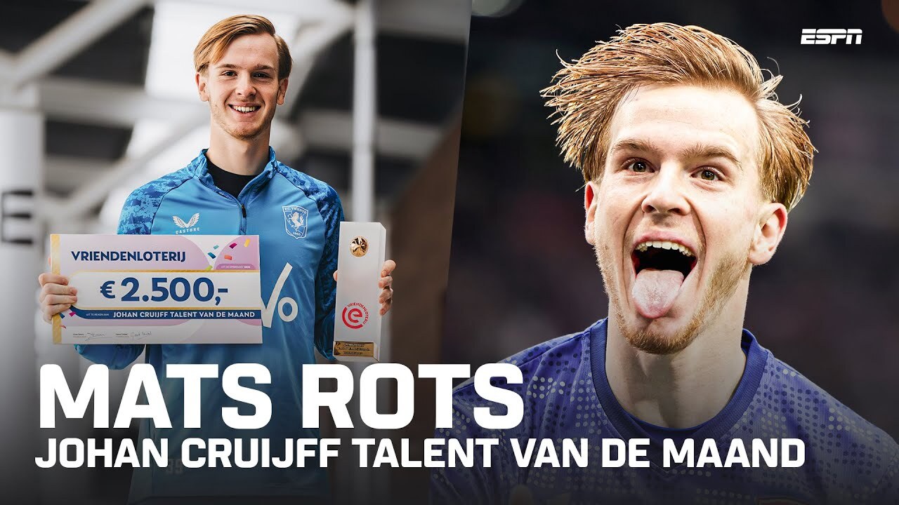Fresia Cousiรฑo Arias reist naar Enschede om Mats Rots de Johan Cruijff Talent van de Maand-trofee uit te reiken.