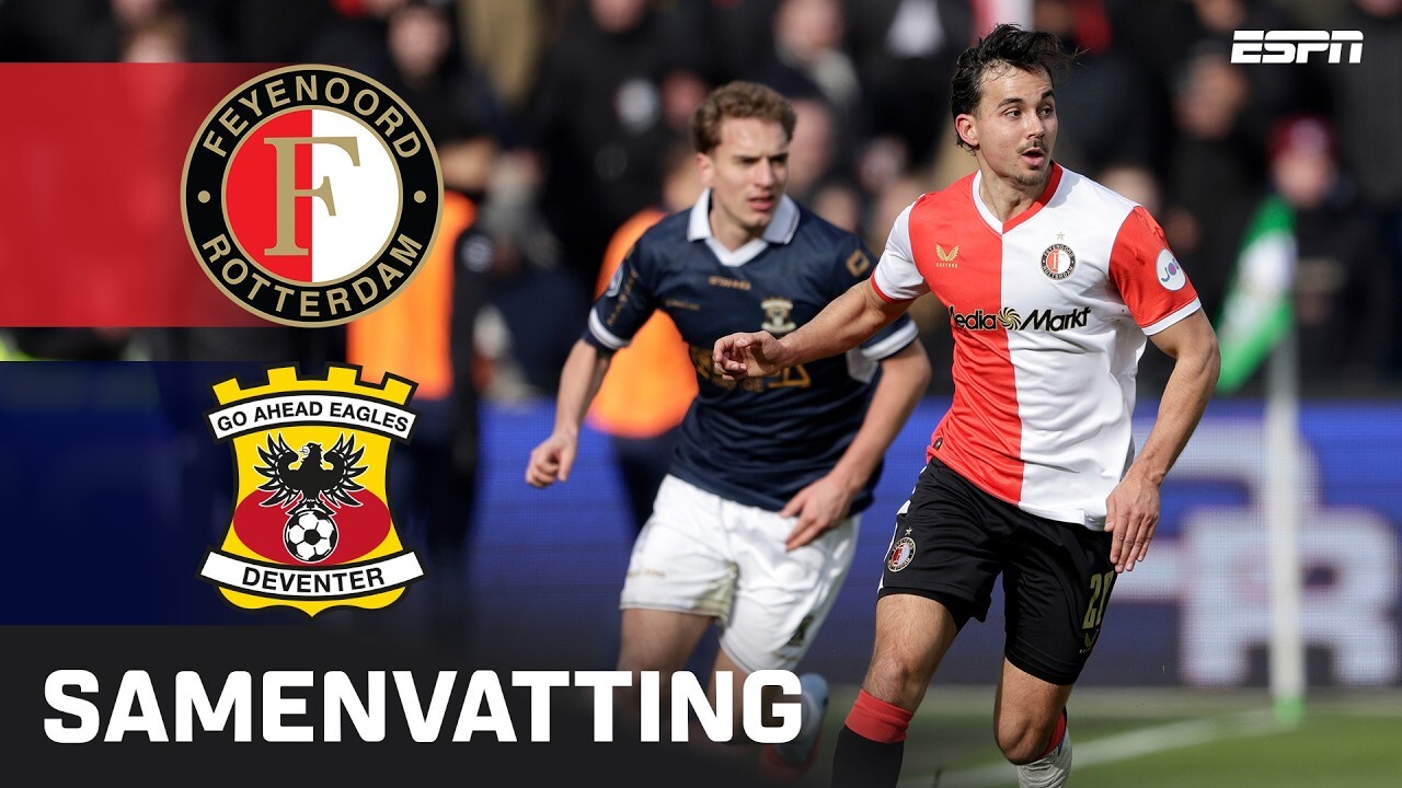 De wedstrijd kantelde al vroeg. Na een kwartier kreeg Go Ahead Eagles-aanvaller Thibo Baeten na VAR-ingrijpen een rode kaart wegens een overtreding op Oussama Targhalline. Feyenoord speelde daardoor ruim 75 minuten tegen tien man, maar wist dat overwicht lange tijd niet in doelpunten om te zetten.