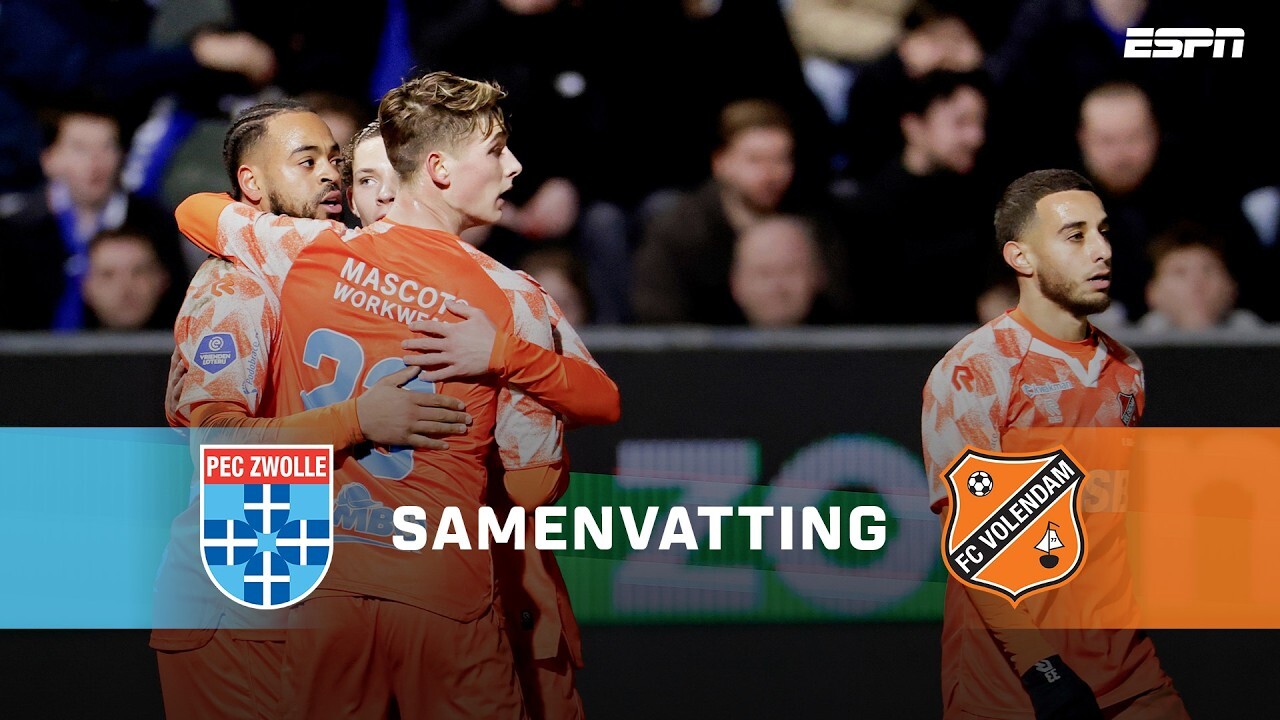 FC Volendam heeft op bezoek bij PEC Zwolle voor een verrassende stunt gezorgd. De ploeg uit Noord-Holland boekte in blessuretijd haar eerste uitzege van het seizoen: 1–2. PEC Zwolle liet dure punten liggen in de strijd om de play-offplaatsen.