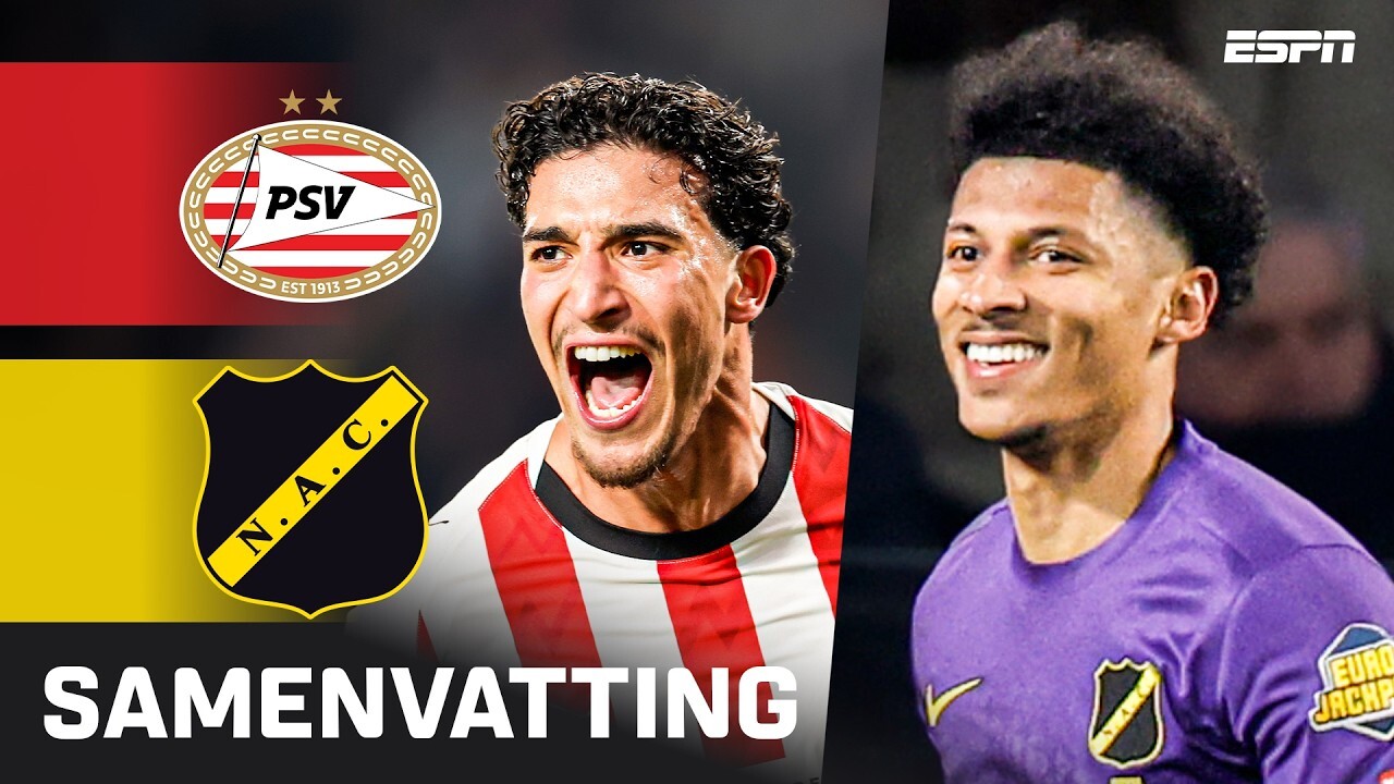 De ploeg van Peter Bosz kende een rommelige eerste helft. Na een vroege kans voor Dennis Man – wiens kopbal op de lat uiteen spatte – bracht Couhaib Driouech de thuisploeg op voorsprong met een bekeken schuiver. PSV leek de controle te pakken, maar gaf het initiatief volledig uit handen. Binnen anderhalve minuut draaide NAC de wedstrijd om: Boy Kemper kopte raak uit een vrije trap en Charles-Andreas Brym profiteerde van een grove fout in de opbouw van Jerdy Schouten.